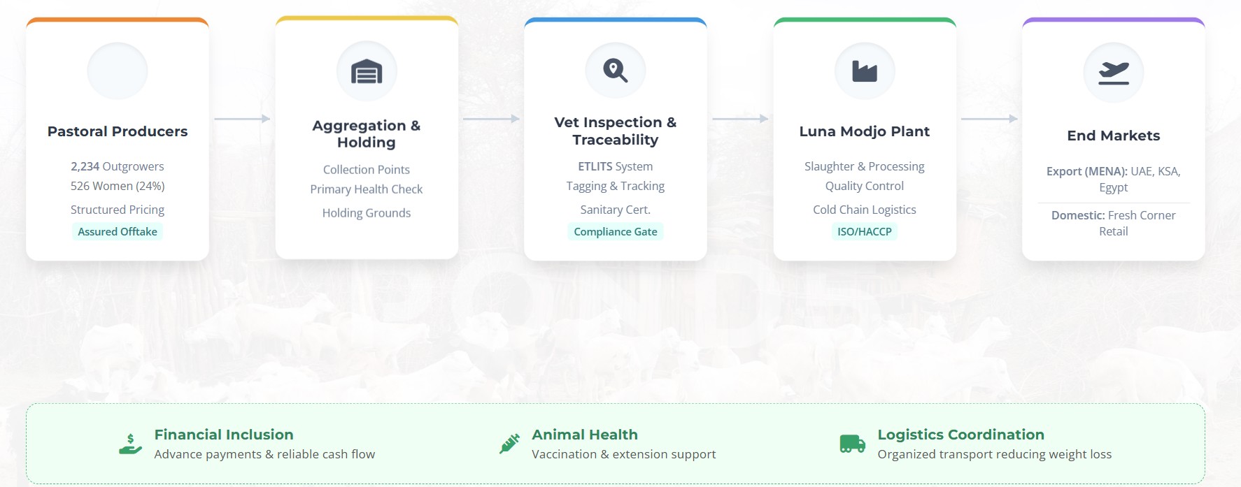Stakeholders underscored that the Luna model represented more than a single enterprise’s performance but a systems-based approach that integrated structured pastoral producer engagement, quality assurance and compliance, export market alignment, financing and risk sharing mechanisms, and, social inclusion and gender participation.